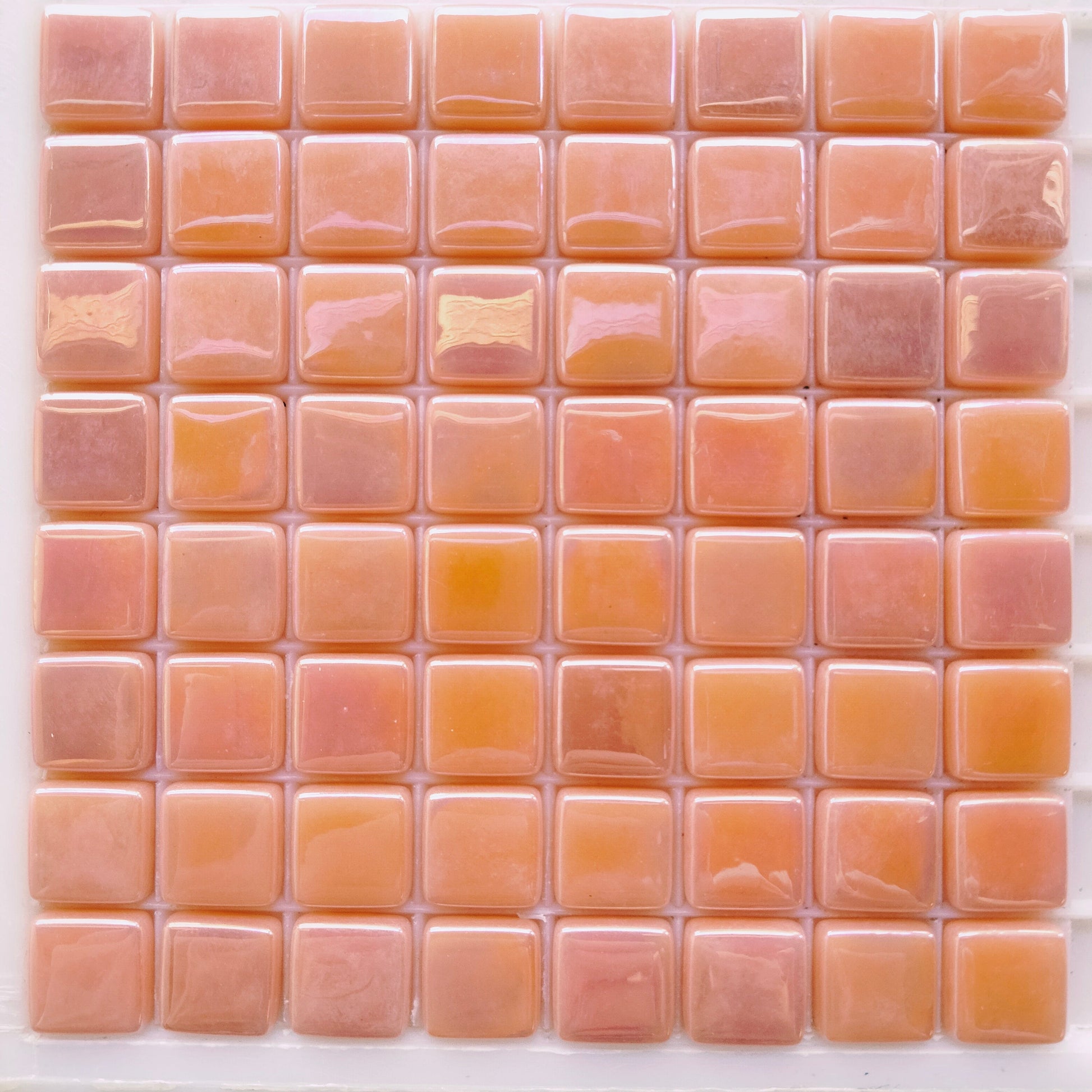 Salmon Kismet tile brings a warm, soft glow to your mosaic projects. Its gentle pinkish-orange color feels cozy and inviting, like a peaceful sunset or a delicate flower petal. Whether you’re creating a large piece of art or adding small details, this tile will add a calming and beautiful touch. Its glossy finish reflects light in a way that makes your design shimmer and come to life.