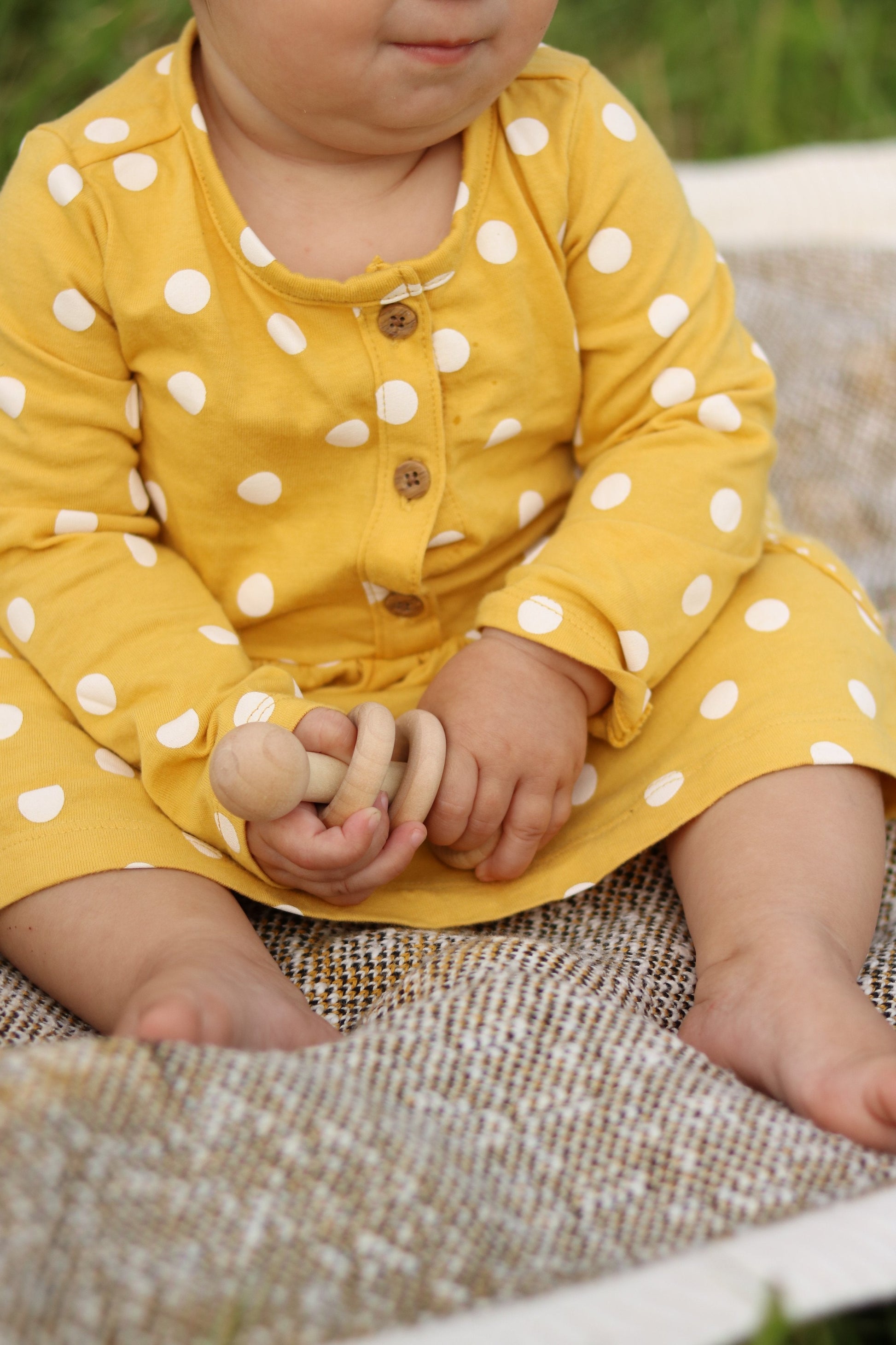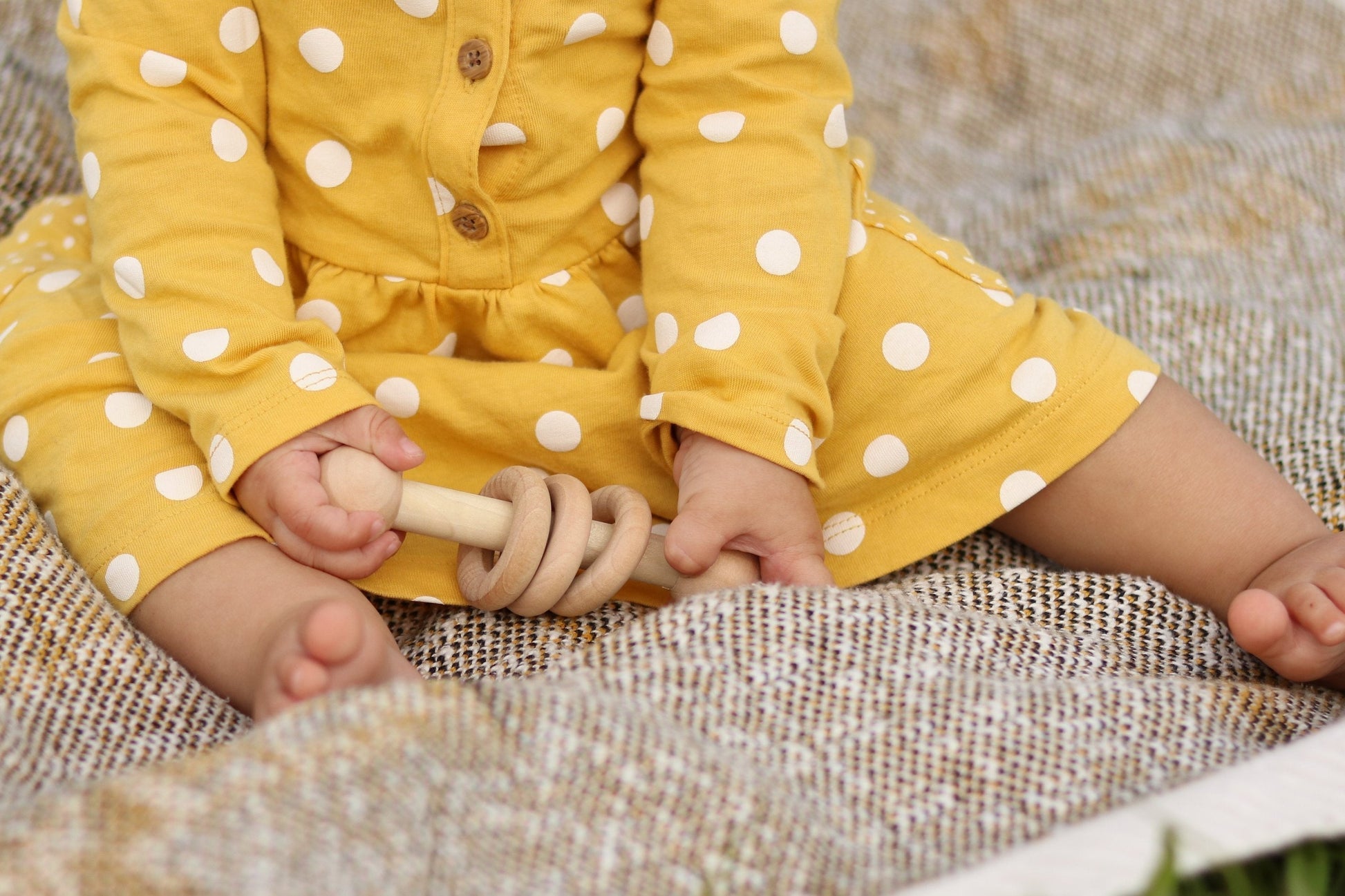 Designed with little hands in mind, this wooden rattle is easy to grasp, promoting fine motor skill development and hand-eye coordination. The durable, all-natural wood construction means it can withstand years of play while remaining free of harmful chemicals, paints, or finishes—perfect for teething infants who love to explore with their mouths.