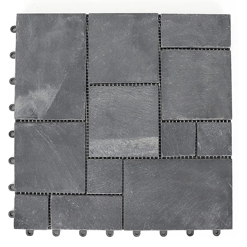 - ★ 3RD STREET INN SLATE STONE DECK TILES - 3rd Street Inn Stone Deck Tiles are made from 100% slate tile. Slate is known for its excellent resistance to rot and decay from outdoor elements including rain, sun, mold, mildew, and insects. Each 3rd Street Inn interlocking paver provides 12"x12" (1 Square Foot) of coverage and is available as a 1-pack / Sample (1 Square Feet), 6-pack (6 Square Feet), and 18-pack (18 Square Feet).