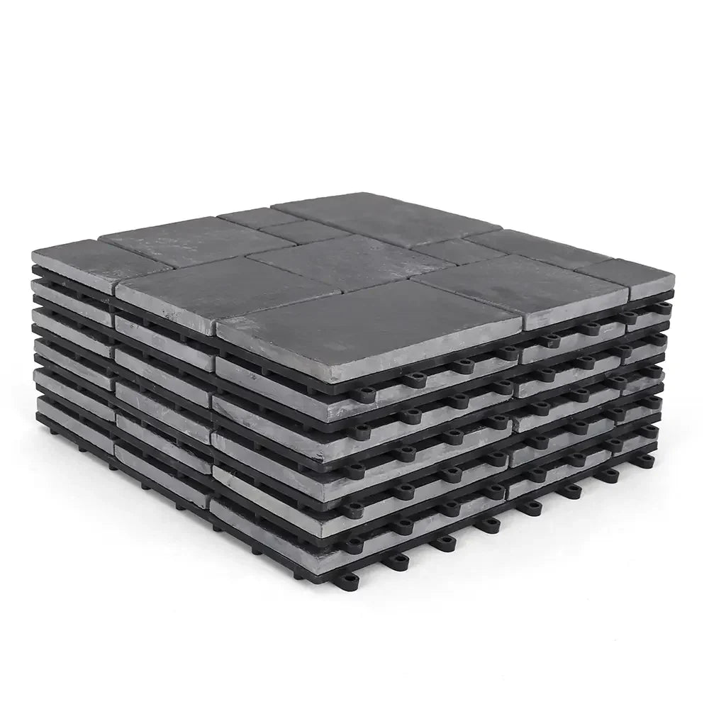 - ★ EASY INSTALLATION / NO HARDWARE NEEDED - 3rd Street Inn stone outdoor flooring features snap-lock connectors for easy DIY installation without the use of hardware. Install the patio tiles by lining them up and then stepping on the seams or hitting with a rubber mallet until you hear an audible "click". 3rd Street Inn patio flooring is made hardware free so that there aren't any components to rust and break down in the outdoor elements. The stone deck tiles must be installed on a flat surface.
