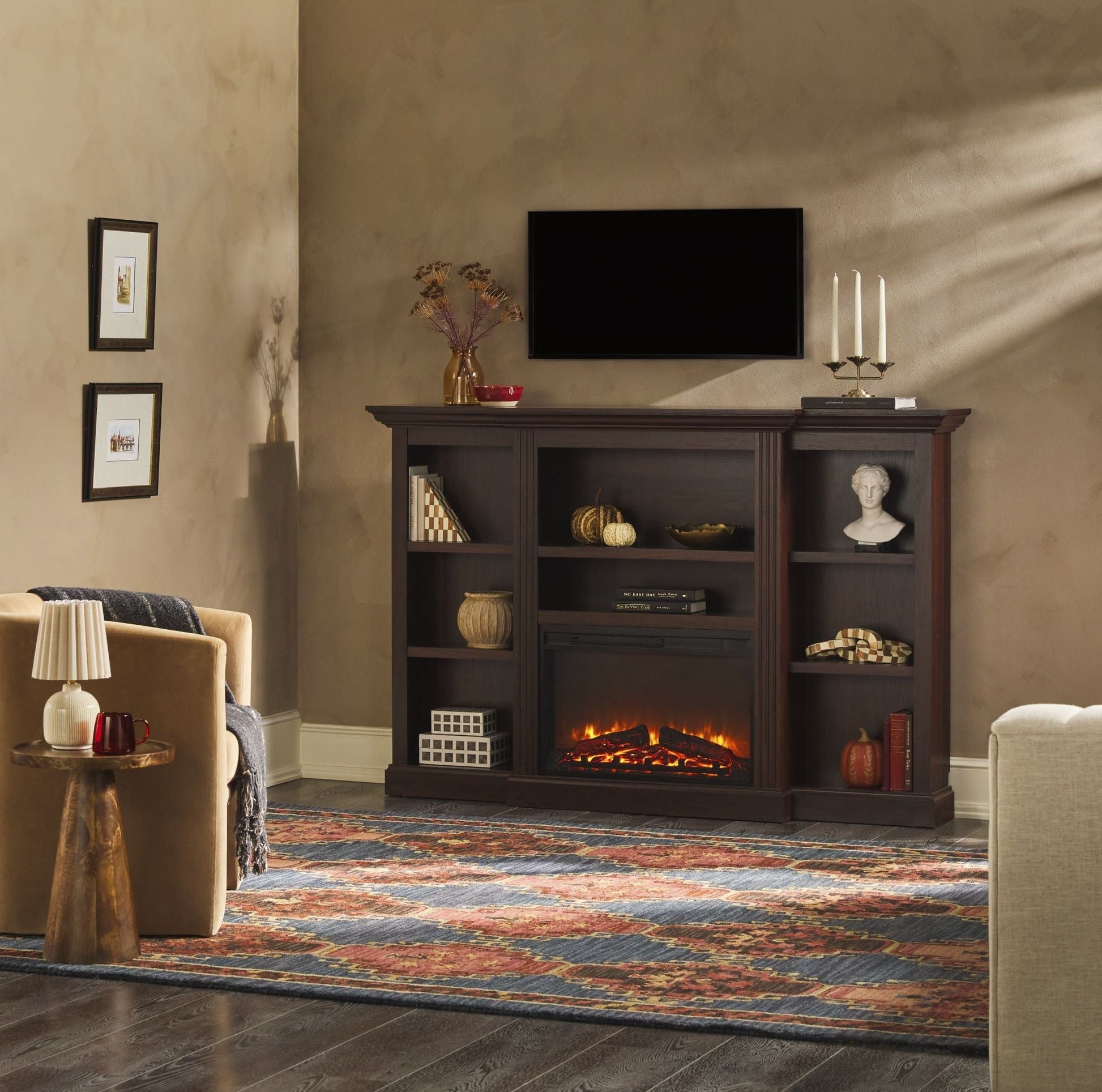 No built-in fireplace? No problem. The Cullen 70" Traditional Electric Fireplace allows you to make any room cozier and more inviting… with no contractor required. Get the look and feel of a traditional hearth plus the added storage from open shelving. The timeless molding and groove details offer a high-end look that elevates your space, while the 26-inch fireplace insert allows you to enjoy the ambiance of a fire with or without heat. There’s no need to walk across the room to change the settings, as the handy remote and 8-hour timer allow you to control everything from afar. Here’s to year-round fireplace vibes.