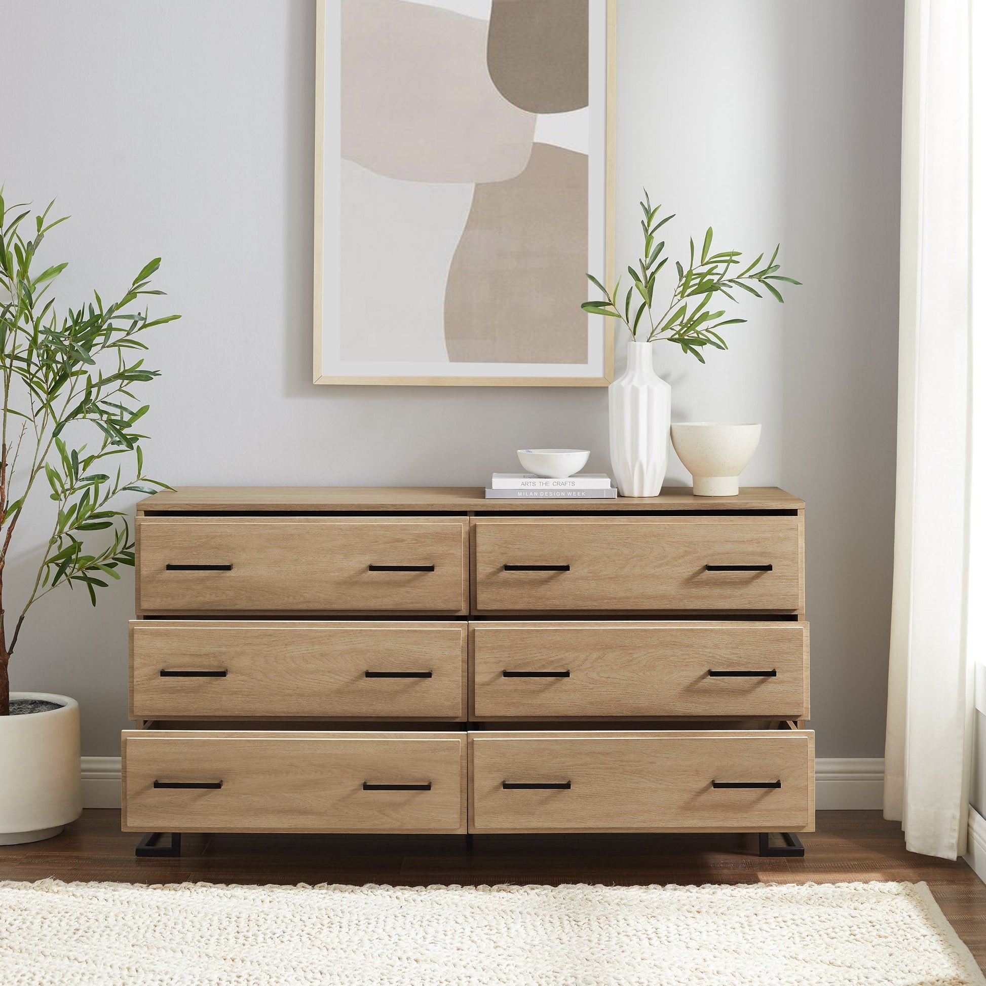 We know you love the classics, but this collection just took transitionally timeless up a notch. With its ultra-modern metal legs and woodgrain laminate finish, this piece will sit pretty in any corner of your sanctuary. Curate an aesthetic bedside space and tuck clutter away within spacious drawers on smooth, telescoping metal glides. With a warp-resistant MDF build and stunning laminate finish, this piece is the perfect finishing touch to bring your Scandi, Japandi, or coastal-inspired bedroom together.