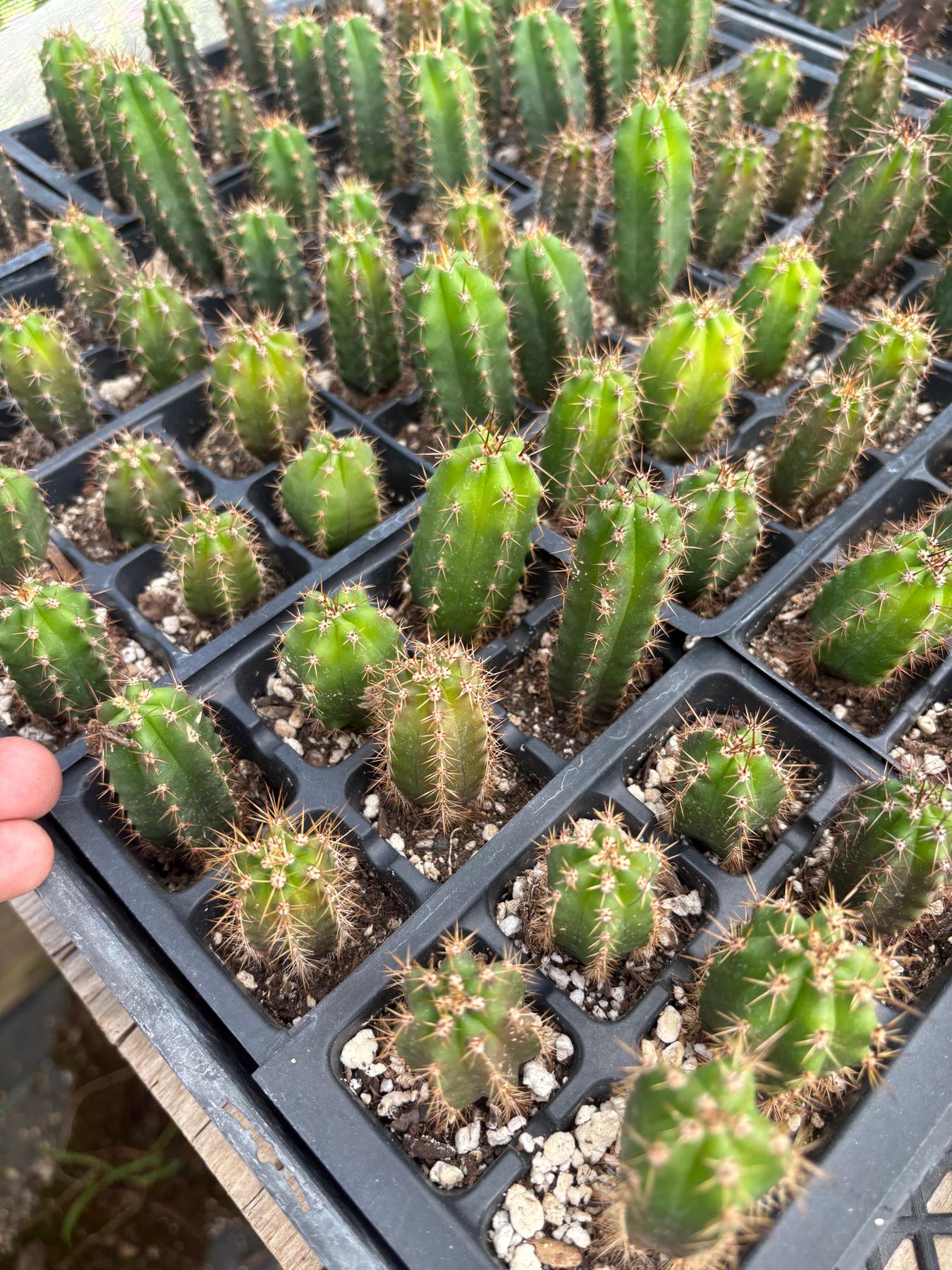 These are seedlings growing in plug trays, approx 2-4" above the soil line. As they grow out, there will likely be varying differences, spine length, rib shapes etc. Sometimes spine scars on sides simply per growing close to each other, let them grow and you'll never notice them down at the bottom! Ready to be potted on larger containers.