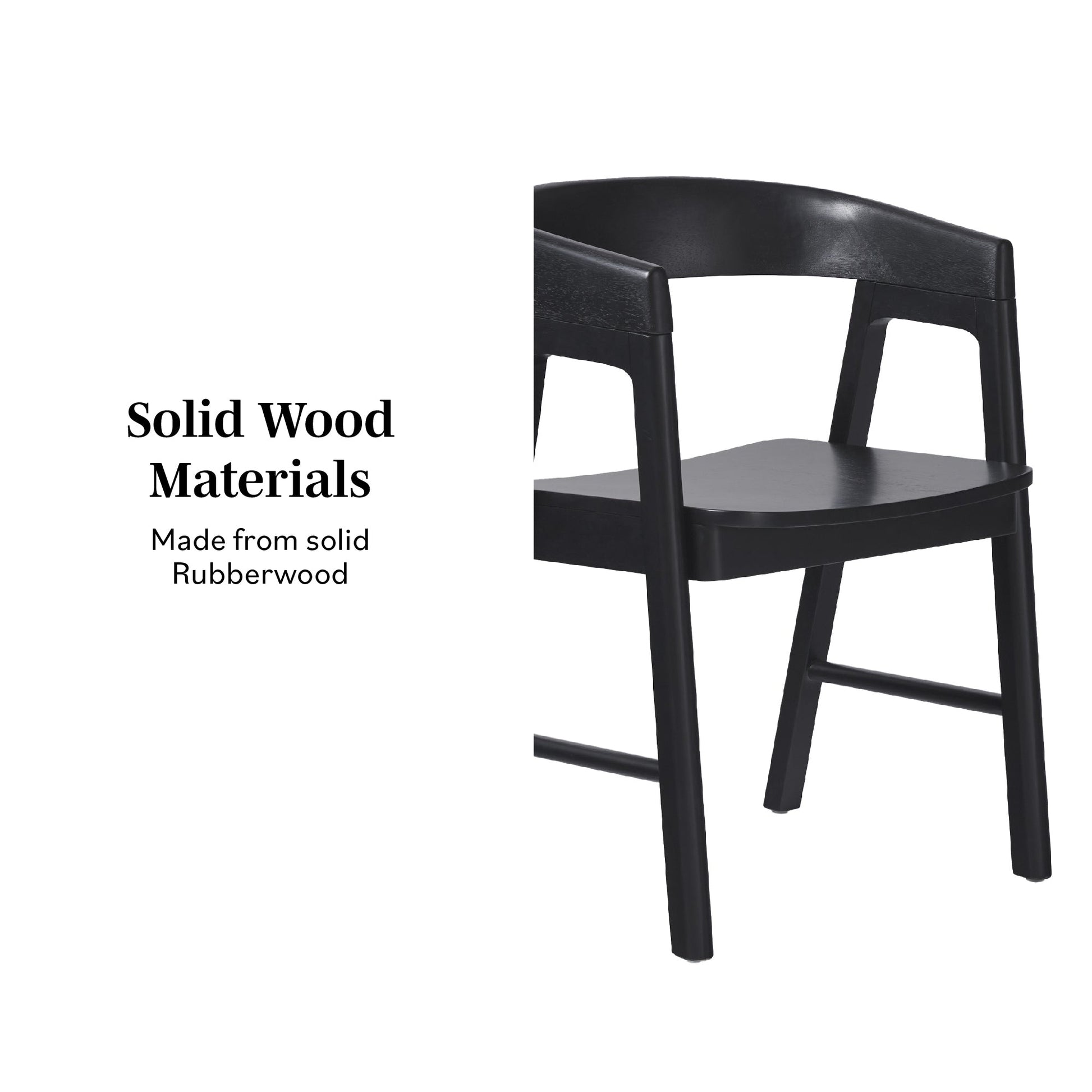 Get the perfect blend of style, comfort, and durability with this set of two Modern Solid Wood Rounded Back Dining Chairs. The trend-inspired curved back design is a win-win: it’s chic, unique, and perfectly hugs your frame. Supportive armrests add even more comfort for longer periods of sitting. With a design this good, it’s easy to linger longer over a great meal or productive study session.