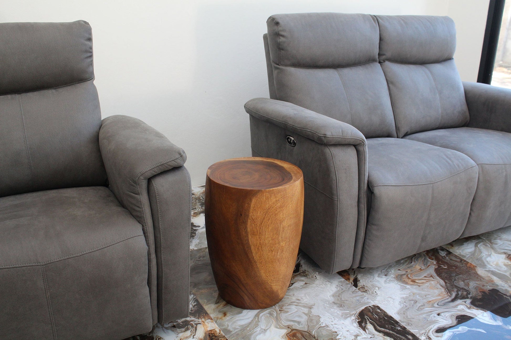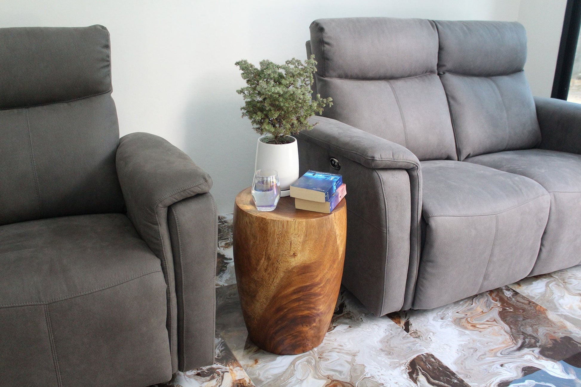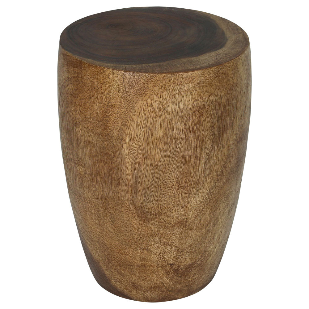 Our sustainable Merlot Monkey Pod Wood End Table, Stool or Stand. Inspired by the rounded shoulders of a traditional merlot wine bottle, our mango wood stool's gently sloped sides add curve appeal. Whether used for seating or as a side table, it blends with any color scheme.