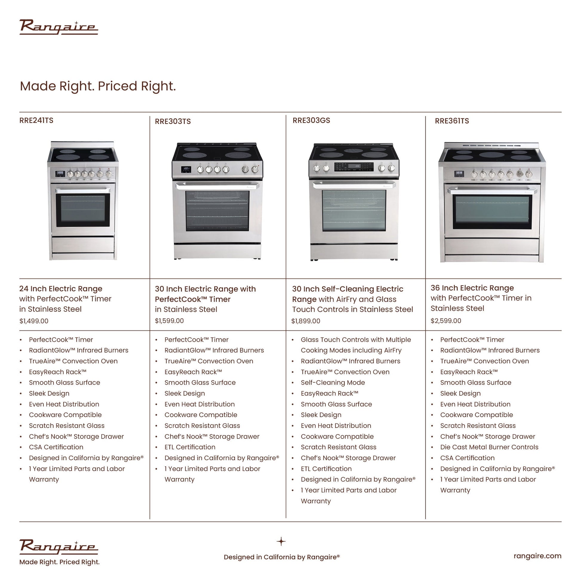 Rangaire 24" Electric Range AirFry Convection Oven Freestanding Stainless Steel RRE241TS