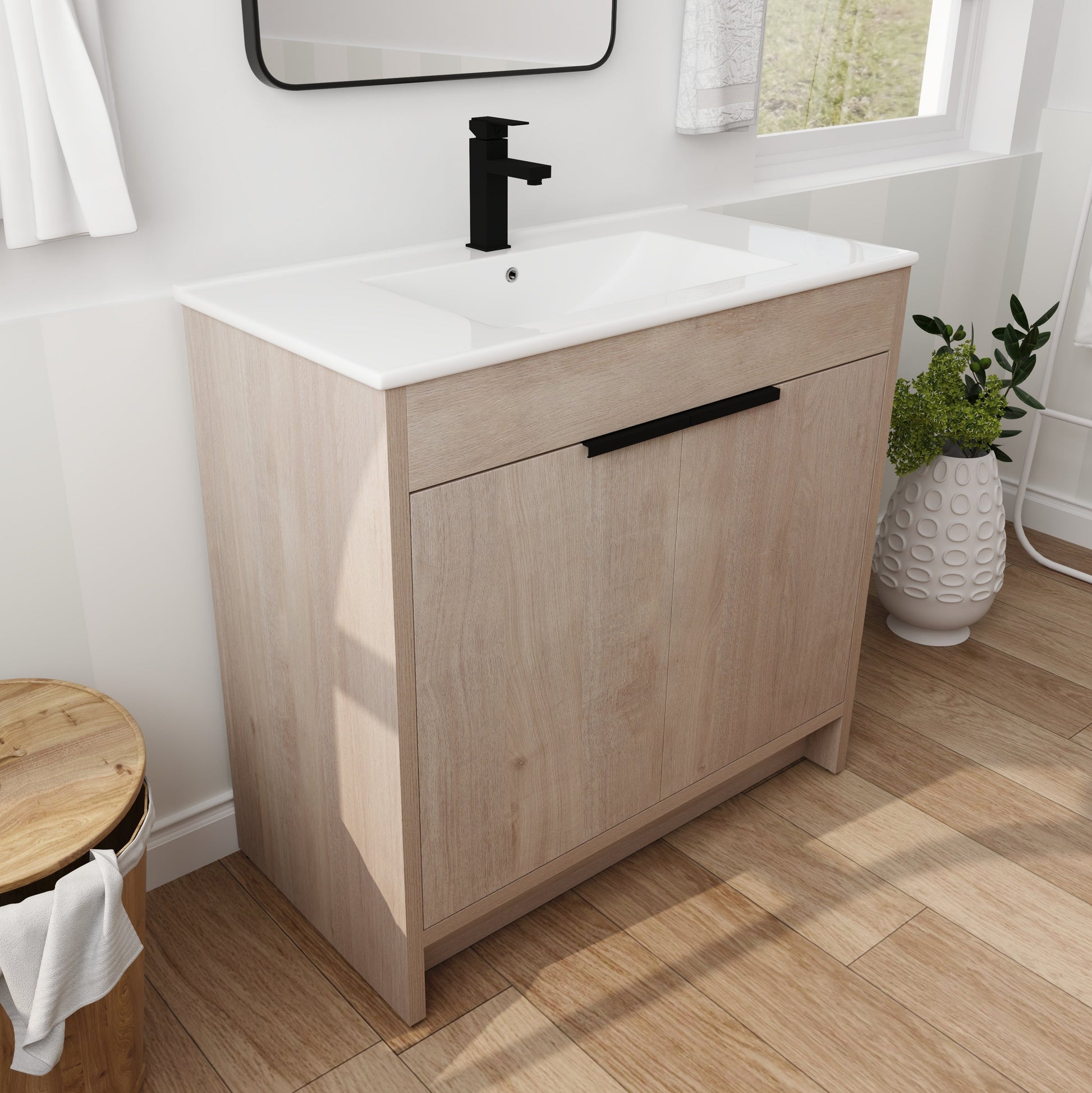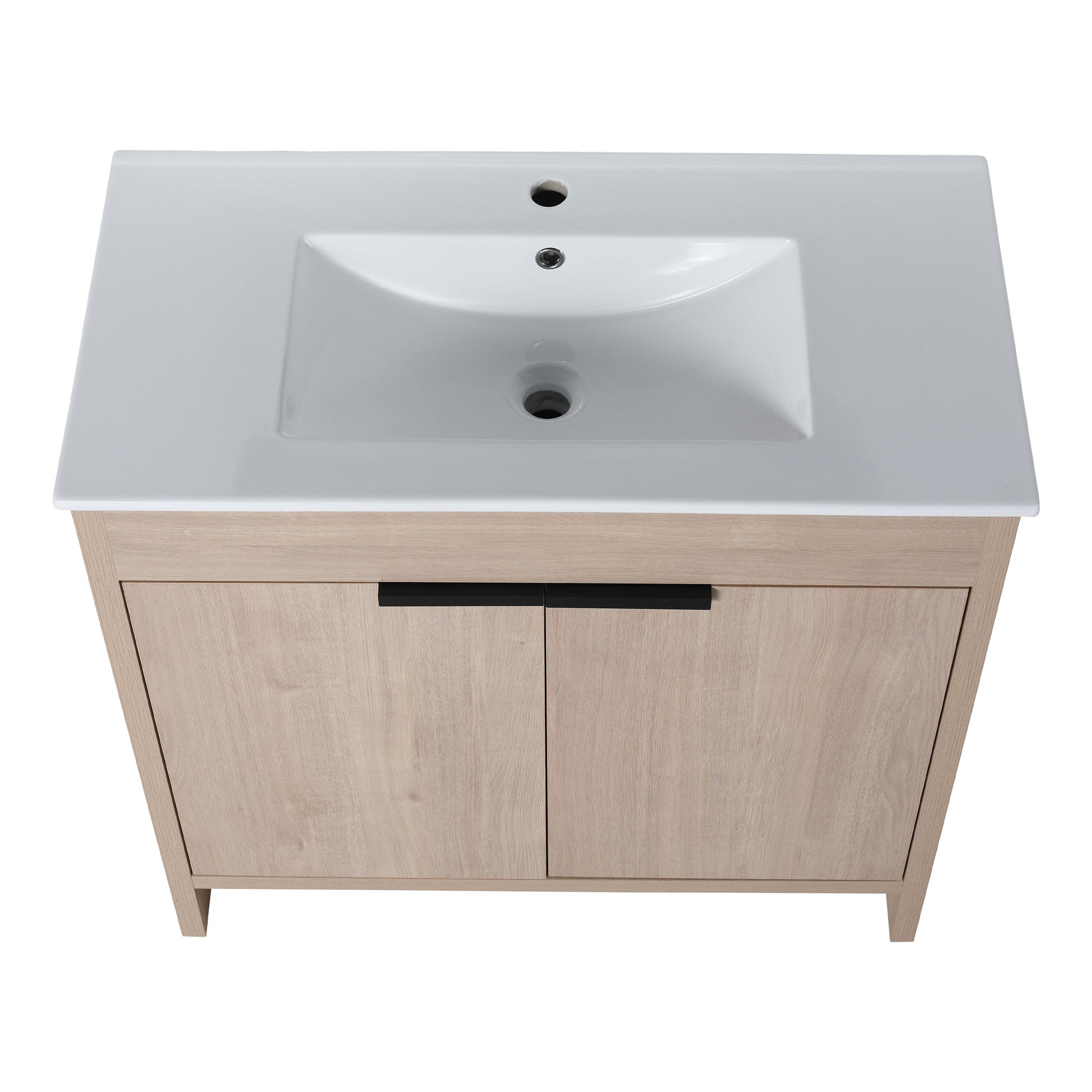 Walker Edison - 36 Inch Freestanding Bathroom Vanity with White Ceramic Sink & 2 Soft-Close Cabinet Doors