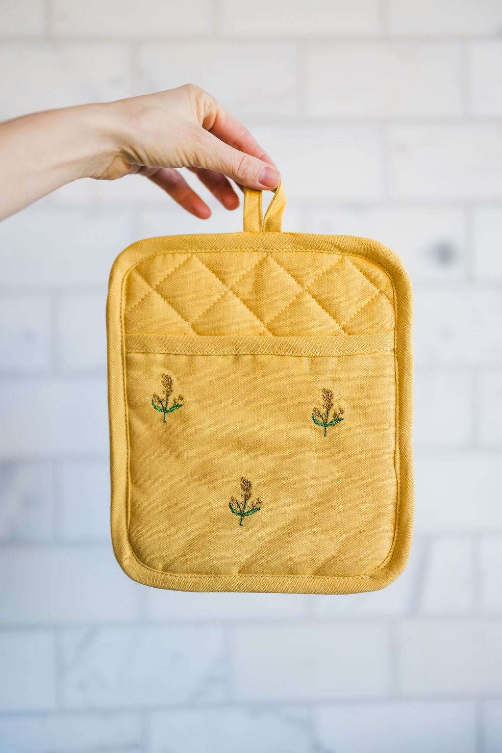 Just like everything else we sell, our Chester Embroidered Pot Holder was designed in-house, using 100% cotton and featuring small embroidered flowers.