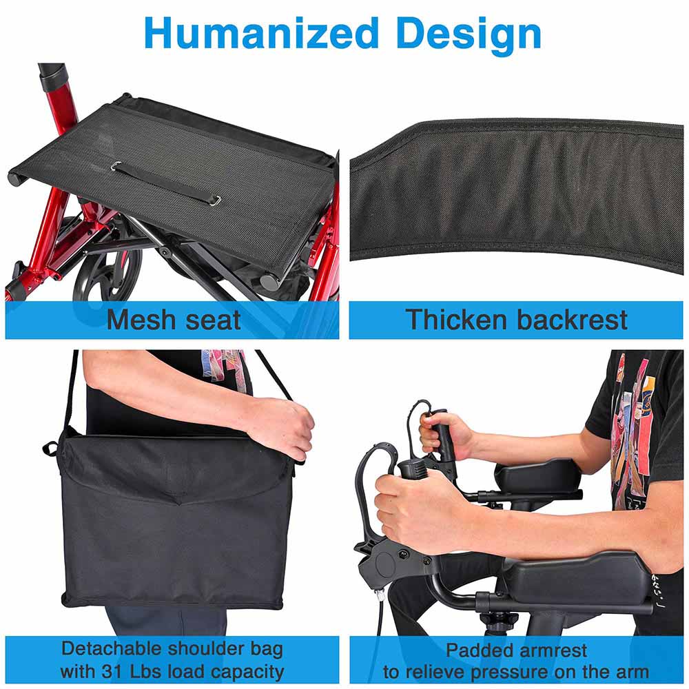 - Heightened & Adjustable Armrest - Rolling Mobility Walking Aid features padded armrest, 6-level height adjustable, also length adjustable to fit different arm length.